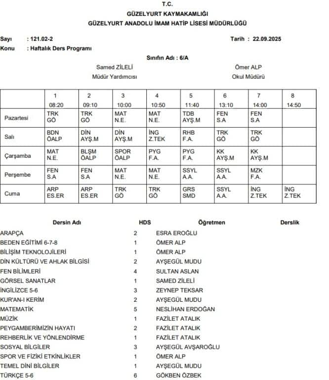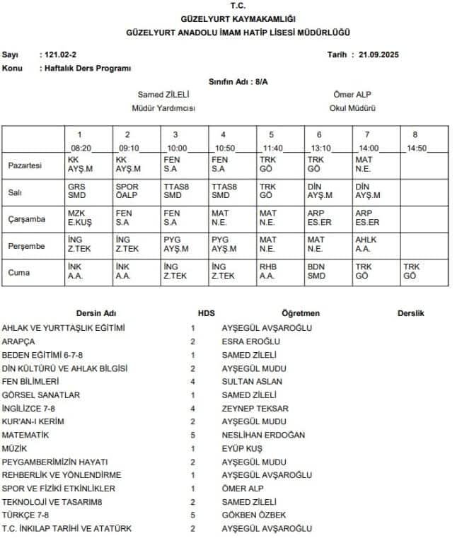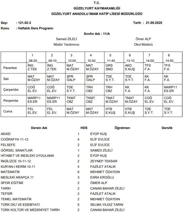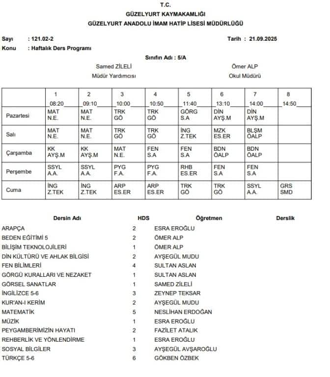 Sevgili öğrencilerimiz; 22.09.2025 Pazartesi gününden itibaren uygulanmaya başlanacak ders programımız görsellerde yer almaktadır.